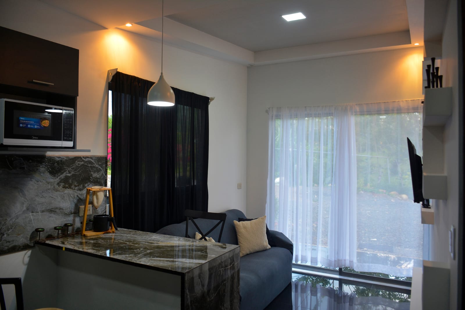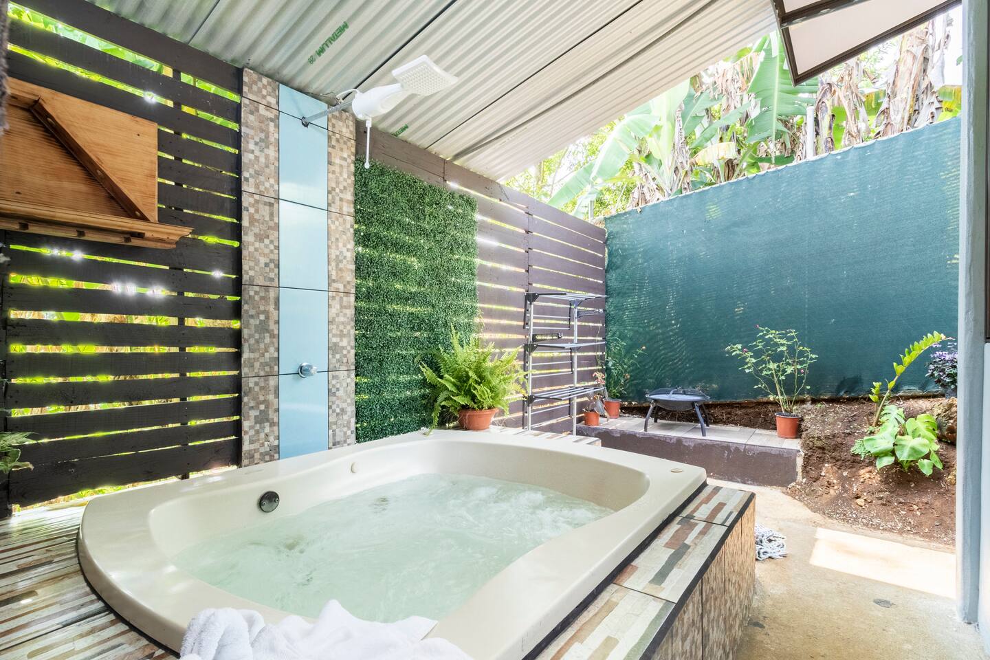 Para una escapada romántica o un retiro tranquilo, la Villa Descanso ofrece un ambiente íntimo y acogedor. Con una habitación Queen-size, baño privado con Jacuzzi y un pequeño balcón con vista al jardín tropical, es el santuario perfecto para parejas. Despiértate con el canto de los pájaros y relájate en total privacidad.